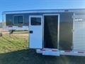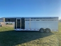2024 Sooner Model SRD 8024 Smart Tack, 7'2" Tall 8' wide 24ft long, Has Smart Tack Side tack with 2 tier 6 place saddle rack, Blanket bar and lots of bridle hooks, 6ft short wall dressing room with boot box, Camper steps for tack room and side tack, Horse area has easy care flooring front stud stall and the new air flow padded dividers, Tie rail inside and outside, 2-way roof vents above each horse and Smoked plexiglass side inserts, Hydraulic jack and tandem 7K torsion axles with Aluminum wheels, Metallic black side sheets, 8YEAR LIMITED WARRANTY