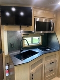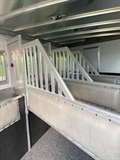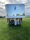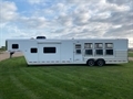 2025 Featherlite Model 9808 4 Horse L.Q. 8ft wide 7'6" Tall 32'3" Long with a 13ft Short wall Liberty SE Living Quarters, Slide out, Interior Decor Package Urban Saddle, 40 Gallon Fresh Water Tank, Two 31 Gallon holding tanks, Ducted ceiling 13,500 BTU Air Conditioning, 20,000 BTU Ducted Furnace, Jacknife sofa and Dinette, 1.9 Cubic foot stainless steel convection microwave, 8 Cu ft Refrigerator with freezer, On demand pressure water system with 6 gallon water heater, Solid wood Cabinets, Commercial grade linoleum flooring, Swing out TV, 2 Burner stove, Porcelain foot flush toilet, Large radius shower, Medicine cabinet above sink in Bathroom. Electric Awning. Horse area has easy care flooring, Air flow stall dividers, Drop down feed doors at head side and bus windows at tail side, Mangers, Rear collapsable tack with 4 tier saddle racks, Dual Hydraulic Jacks. 3/10 YEAR LIMITED WARRANTY